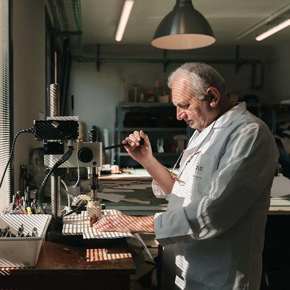 Lavoriamo unicamente con concerie situate in Italia. Realizzate in lotti, queste borse sottolineano l'impegno di MadBag per la sostenibilità e il design senza tempo. Ogni pezzo unisce funzionalità ed eleganza, offrendo ai consumatori una qualità duratura.